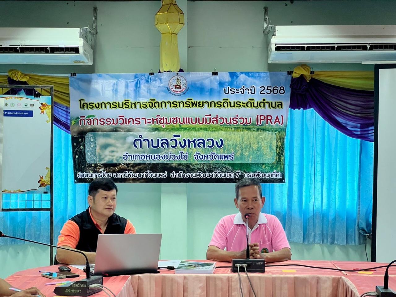 สถานีพัฒนาที่ดินแพร่ วิเคราะห์ชุมชนแบบมีส่วนร่วม (PRA) โครงการบริหารจัดการทรัพยากรดินระดับตำบล ปีงบประมาณ 2568 ณ ห้องประชุม อบต.วังหลวง อ.หนองม่วงไข่ จ.แพร่