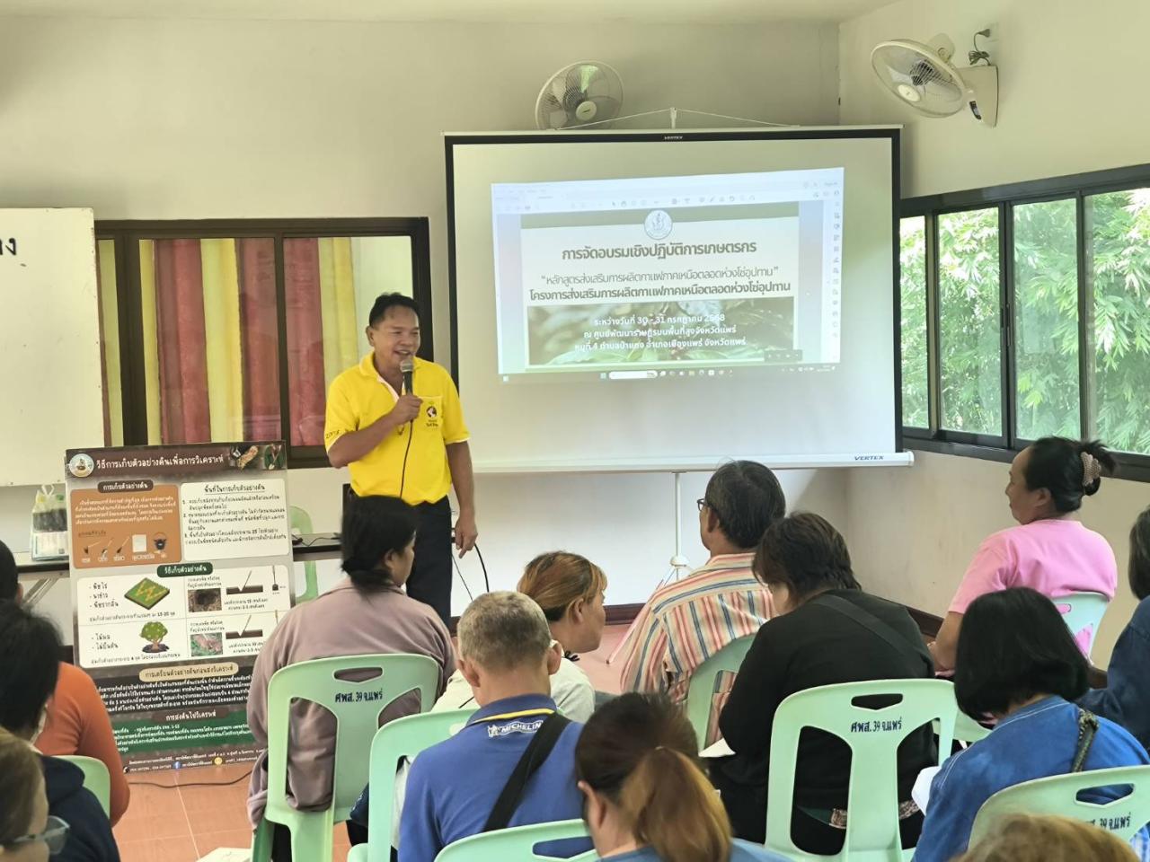 วันพุธ ที่ 30 กรกฎาคม พ.ศ. 2568 สถานีพัฒนาที่ดินแพร่ โดยนายณัฎพสิษฐ์ เถระรัชชานนท์ ผู้อำนวยการสถานีพัฒนาที่ดินแพร่ มอบหมายให้นายสุบิน สุรีย์ นักวิชาการเกษตร และเจ้าหน้าที่สถานีพัฒนาที่ดินแพร่ ร่วมเป็นวิทยากรจัดอบรมเชิงปฏิบัติการ หลักสูตรการส่งเสริมการผลิตกาแฟภาคเหนือตลอดห่วงโซ่อุปทาน ประจำปีงบประมาณ 2568 โดยบรรยายในหัวข้อ "การปรับปรุงบำรุงดิน และฝึกปฏิบัติการวิเคราะห์ดินด้วยชุดตรวจสอบดินภาคสนาม รวมถึงถ่ายทอดเทคโนโลยีจุลินทรีย์ พด. (กรมพัฒนาที่ดิน)" เพื่อส่งเสริมสนับสนุนให้เกษตรกร มีองค์ความรู้ด้านวิชาการและเทคโนโลยีด้านการเกษตร สามารถนำความรู้ไปใช้และปฏิบัติได้อย่างแท้จริง และถ่ายทอดให้กับเกษตรกรในชุมชนของตนเองได้ และสนับสนุนสารเร่งซุปเปอร์ พด.1 ,2 ,3 ,6 ,7 รวมทั้งให้คำแนะนำในด้านการพัฒนาที่ดิน แก่ผู้เข้ารับการอบรม จำนวน 30 ราย