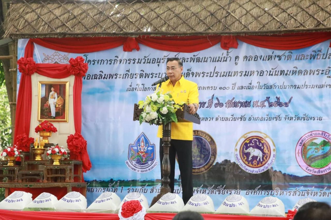 นายปริญญานนท์ ทองคำ ผู้อำนวยการสถานีพัฒนาที่ดินเชียงราย ร่วมกิจกรรมวันอนุรักษ์และพัฒนาแม่น้ำ คู คลองแห่งชาติ ประจำปี 2568 เพื่อเฉลิมพระเกียรติพระบาทสมเด็จพระปรเมนทรมหาอานันทมหิดล พระอัฐมรามาธิบดินทร เนื่องในโอกาสวันพระบรมราชสมภพครบ 100 ปี วันที่ 20 กันยายน 2568 พร้อมทั้งปล่อยพันธุ์สัตว์น้ำ จำนวน 200,099 ตัว เนื่องในวันประมงแห่งชาติ โดยมีนายชรินทร์ ทองสุข ผู้ว่าราชการจังหวัดเชียงราย เป็นประธานเปิดโครงการ และมีนายอำเภอเวียงชัย ผู้อำนวยการส่วนอนุรักษ์ทรัพยากรน้ำที่ 4 เชียงราย รองนายกองค์การบริหารส่วนจังหวัดเชียงราย หัวหน้าส่วนราชการ และผู้นำท้องที่ท้องถิ่น เข้าร่วมพิธีอย่างพร้อมเพรียงกัน ณ สวนสาธารณะหนองหลวง อำเภอเวียงชัย จังหวัดเชียงราย ![]()