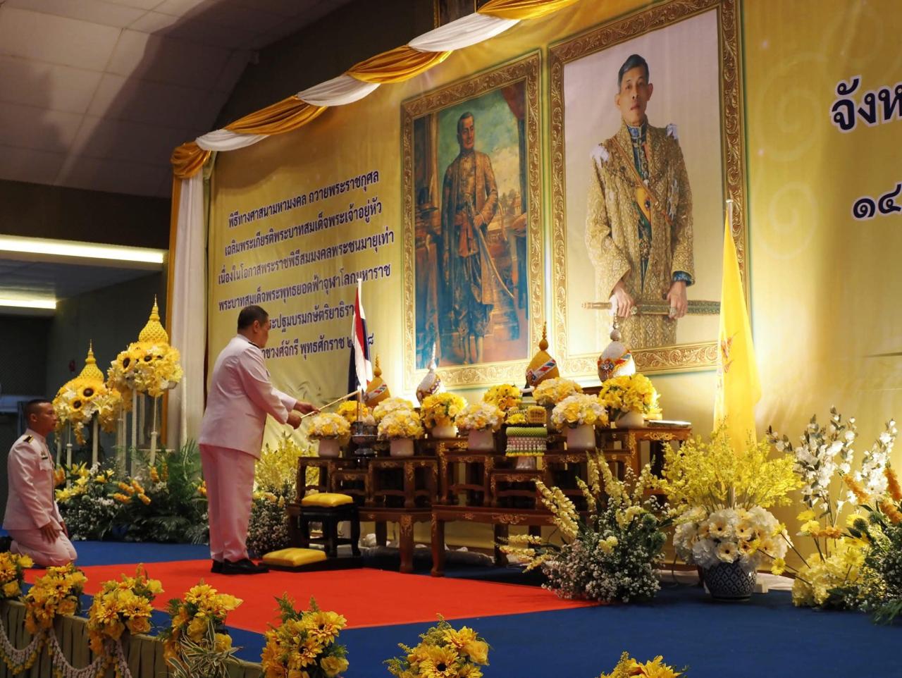 🔸 จากนั้นผู้เข้าร่วมพิธีพร้อมกัน ด้านในหอประชุมเสรี พิทักษ์ ฯ ร่วมกันประกอบพิธีทางศาสนามหามงคล 5 ศาสนา โดยมีพระสงฆ์เจริญพระพุทธมนต์ ผู้แทนศาสนาอิสลาม ประกอบพิธีดุอาห์ขอพร ผู้แทนศาสนาคริสต์นิกายโรมันคาทอลิก ประกอบพิธีอธิษฐานภาวนาขอพร ผู้แทนศาสนาคริสต์ นิกายโปรแตสแตนท์ ประกอบพิธีอธิษฐานภาวนาขอพร ผู้แทนศาสนาซิกซ์ กล่าวคำถวายพระพรชัยมงคล จากนั้นผู้ว่าราชการจังหวัดแม่ฮ่องสอน กล่าวถวายราชสดุดีเบื้องหน้าพระบรมสาทิสลักษณ์พระบาทสมเด็จพระพุทธยอดฟ้าจุฬาโลกมหาราช และพระบรมฉายาลักษณ์พระบาทสมเด็จพระเจ้าอยู่หัว จากนั้นผู้ว่าราชการจังหวัดแม่ฮ่องสอน กล่าวถวายราชสดุดีเบื้องหน้าพระบรมสาทิสลักษณ์พระบาทสมเด็จพระพุทธยอดฟ้าจุฬาโลกมหาราช และพระบรมฉายาลักษณ์พระบาทสมเด็จพระเจ้าอยู่หัว