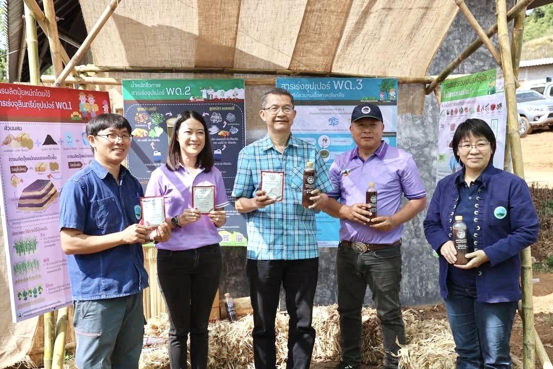 วันพฤหัสบดีที่ 20 กุมภาพันธ์ 2568 นางสาวอนุสรา สมสัก นักวิชาการเกษตรชำนาญการ พร้อมด้วยเจ้าหน้าที่สถานีพัฒนาที่ดินเชียงใหม่ ร่วมกิจกรรม งานวันถ่ายทอดและเเลกเปลี่ยนองค์ความรู้เทคโนโลยีจากงานวิจัย "กาแฟอะราบิกากับความยั่งยืนบนพื้นที่สูง" โดยมี นายธีรภัทร ประยูรสิทธิ กรรมการผู้ทรงคุณวุฒิด้านการเกษตร และประธานอนุกรรมการวิจัย สถาบันวิจัยเเละพัฒนาพื้นที่สูง เป็นประธานพิธีเปิด ภายในงานมีกิจกรรมแลกเปลี่ยนองค์ความรู้ฯ และกิจกรรมเสวนาร่วมกับผู้นำบนพื้นที่สูง และเครือข่ายผู้ประกอบการกาแฟ สถานีพัฒนาที่ดินเชียงใหม่ ให้การสนับสนุนองค์ความรู้ฯ การผลิตปุ๋ยหมัก และน้ำหมักชีวภาพ โดยการใช้ผลิตภัณฑ์เทคโนโลยีชีวภาพของ กรมพัฒนาที่ดิน มีผู้เข้าร่วมงาน จำนวน 200 ราย ณ พื้นที่โครงการพัฒนาพื้นที่สูงแบบโครงการหลวงปางหินฝน ตำบลปางหินฝน อำเภอแม่แจ่ม จังหวัดเชียงใหม่