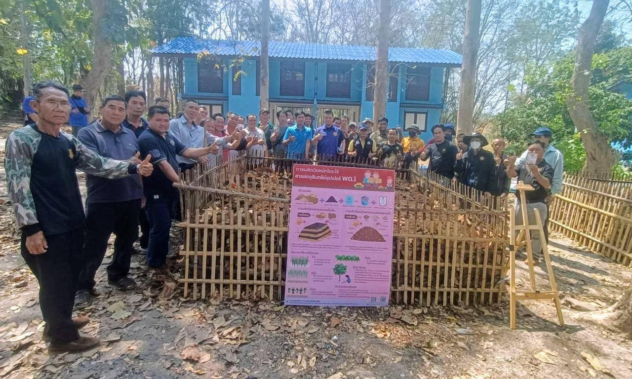 วันอังคารที่ 11 มีนาคม 2568 นายภูมิ แก้วอินตา เจ้าพนักงานการเกษตรชำนาญงาน สถานีพัฒนาที่ดินเชียงใหม่ ร่วมเป็นวิทยากรให้ความรู้แก่อาสาสมัครและประชาชน ในโครงการป้องกันและแก้ไขปัญหาไฟป่าหมอกควันและฝุ่นละอองขนาดเล็ก (PM 2.5) อย่างมีส่วนร่วมภายใต้บริบทของพื้นที่ ได้สาธิตพร้อมกับบรรยายให้ความรู้ หัวข้อ “วิธีการบริหารจัดการเชื้อเพลิงในพื้นที่ป่าและนำมาใช้ประโยชน์ได้อย่างเป็นรูปธรรมโดยการทำปุ๋ยหมัก” เพื่อป้องกันและแก้ไขปัญหาการเผาในพื้นที่การเกษตร สร้างรายได้ ลดต้นทุน เพิ่มคุณภาพผลผลิตให้ได้ตามมาตรฐานเกษตรปลอดภัย โดยมี นางจริยา วงษ์สุวรรณ์ นายอำเภอแม่วาง เป็นประธานกล่าวเปิดงาน พร้อมทั้งให้การสนับสนุนผลิตภัณฑ์เทคโนโลยีชีวภาพของกรมพัฒนาที่ดิน (สารเร่งซุปเปอร์ พด.1) ให้แก่อาสาสมัครและประชาชน ในพื้นที่ 20 หมู่บ้าน จำนวน 100 ราย ณ หอประชุมที่ว่าการอำเภอแม่วาง จังหวัดเชียงใหม่