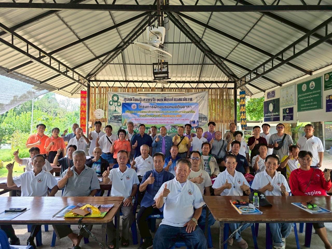 วันพฤหัสบดีที่ 5 มิถุนายน 2568 นางสาวกัญญาภัทร พอสม นักวิชาการเกษตรชำนาญการพิเศษ พร้อมเจ้าหน้าที่สถานีพัฒนาที่ดินเชียงใหม่ ดำเนินการฝึกอบรม โครงการอบรมหมอดินอาสา ปีงบประมาณ 2568 หลักสูตร 3 "การพัฒนาศักยภาพของหมอดินอาสาด้านการพัฒนาที่ดินตามบริบทของท้องถิ่น" โดยมี นายนิลภัทร คงพ่วง ผู้อำนวยการสถานีพัฒนาที่ดินเชียงใหม่ เป็นประธานกล่าวเปิดงาน และบรรยายพิเศษ เรื่อง ชั้นดินและการจัดการดินให้เหมาะสมกับการเกษตร ให้กับหมอดินอาสาที่ร่วมอบรม ในการฝึกอบรมครั้งนี้ มีการทบทวนความถูกต้องของข้อมูลประวัติหมอดินอาสา การพัฒนาศักยภาพของหมอดินอาสาด้านการเกษตร และประชาสัมพันธ์ จุลินทรีย์ พด.16 “แบคทีเรียควบคุมไส้เดือนฝอยรากปม” ให้หมอดินได้รู้จัก มีการแลกเปลี่ยนเรียนรู้ระหว่างหมอดินอาสาในพื้นที่อำเภอแม่ริม พร้อมทั้ง สนับสนุนผลิตภัณฑ์เทคโนโลยีชีวภาพต่างๆ ของกรมพัฒนาที่ดิน ให้แก่ หมอดินอาสา ณ ศูนย์ถ่ายทอดเทคโนโลยีการพัฒนาที่ดินตำบลแม่แรม อำเภอแม่ริม จังหวัดเชียงใหม่ โดยมีหมอดินอาสาเข้าร่วมฝึกอบรม จำนวน 80 ราย