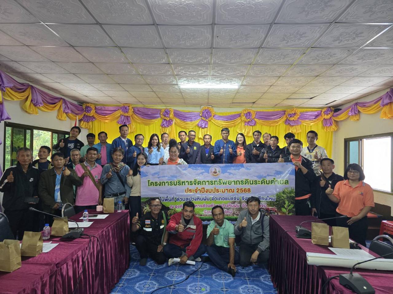 วันพฤหัสบดีที่ 3 กรกฎาคม 2568 นางสาวอนุสรา สมสัก นักวิชาการเกษตรชำนาญการ พร้อมด้วย นางสาวทรายขาว วันนา นักวิชาการเกษตรชำนาญการ กลุ่มวางแผนการใช้ที่ดิน สำนักงานพัฒนาที่ดินเขต 6 พร้อมด้วยเจ้าหน้าที่ฯ ร่วมจัดทำแผนการดำเนินกิจกรรมตามโครงการบริหารจัดการทรัพยากรดินระดับตำบล ประจำปีงบประมาณ พ.ศ. 2568 โดยมีวัตถุประสงค์เพื่อส่งเสริมการใช้ทรัพยากรดินอย่างยั่งยืนผ่านกระบวนการมีส่วนร่วมของชุมชน การวิเคราะห์ชุมชนแบบมีส่วนร่วม (Participatory Rural Appraisal : PRA) เพื่อประเมินสภาพพื้นที่ ลักษณะการใช้ประโยชน์ที่ดิน การจัดการทรัพยากร ดิน น้ำ และป่าไม้ ตลอดจนการรวมกลุ่มของเกษตรกร ซึ่งร่วมกันระดมความคิดเห็น วิเคราะห์ปัญหา พร้อมทั้งเสนอแนวทางการแก้ไข และความต้องการในการพัฒนาพื้นที่อย่างเหมาะสม และยั่งยืนสู่การพัฒนาพื้นที่เกษตรกรรมให้มีประสิทธิภาพ โดยมีผู้เข้าร่วมกิจกรรมจากผู้บริหารองค์การบริหารส่วนตำบลปางหินฝน กำนัน ผู้ใหญ่บ้าน ณ ห้องประชุม ชั้น 3 องค์การบริหารส่วนตำบลปางหินฝน อำเภอแม่แจ่ม จังหวัดเชียงใหม่