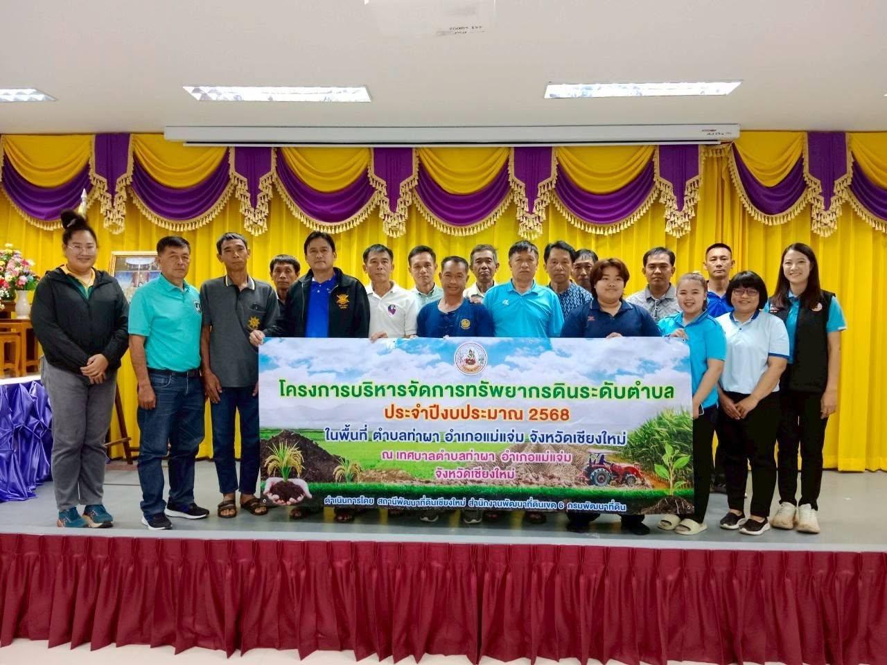 วันศุกร์ที่ 18 กรกฎาคม 2568 นางสาวอนุสรา สมสัก นักวิชาการเกษตรชำนาญการ พร้อมด้วย นางสาวทรายขาว วันนา นักวิชาการเกษตรชำนาญการ กลุ่มวางแผนการใช้ที่ดิน สำนักงานพัฒนาที่ดินเขต 6 และเจ้าหน้าที่สถานีพัฒนาที่ดินเชียงใหม่ ร่วมจัดทำแผนการดำเนินกิจกรรมโครงการบริหารจัดการทรัพยากรดินระดับตำบล ประจำปีงบประมาณ พ.ศ. 2568 โดยมีวัตถุประสงค์ เพื่อส่งเสริมการใช้ทรัพยากรดินอย่างยั่งยืนผ่านกระบวนการมีส่วนร่วมของชุมชน การวิเคราะห์ชุมชนแบบมีส่วนร่วม (PRA) เพื่อประเมินสภาพพื้นที่ลักษณะการใช้ประโยชน์ที่ดิน การจัดการทรัพยากร ดิน น้ำ ป่า พร้อมทั้งระดมความคิดเห็น ปัญหาพร้อมทั้งเสนอแนวทางการแก้ไข และความต้องการ เพื่อการเเก้ไขปัญหาในพื้นที่อย่างเหมาะสม นำไปสู่ความยั่งยืนและเกิดประสิทธิภาพ โดยมี นายอุทัย บุญเทียม นายกเทศมนตรีตำบลท่าผา เป็นประธานกล่าวเปิดงาน และผู้มีเข้าร่วมกิจกรรม จำนวน 20 ราย ณ ห้องประชุมเทศบาลตำบลท่าผา ตำบลท่าผา อำเภอแม่แจ่ม จังหวัดเชียงใหม่