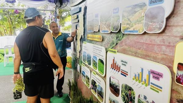 วันจันทร์ที่ 11 สิงหาคม 2568 นายนิลภัทร คงพ่วง ผู้อำนวยการสถานีพัฒนาที่ดินเชียงใหม่ และเจ้าหน้าที่ในสังกัดฯ เข้าร่วมจัดนิทรรศการเฉลิมพระเกียรติ ของกรมพัฒนาที่ดิน ในโครงการ “รักษ์ดิน รักษ์น้ำ สืบสานตามพระราชเสาวนีย์ พระบรมราชชนนีพันปีหลวง” และ “โมเดลสาธิตการจัดระบบอนุรักษ์ดินและน้ำ” ดำเนินการโดยสถานีพัฒนาที่ดินเชียงใหม่ ในงาน “สีสรรพรรณไม้ เทิดไท้บรมราชินีนาถ” ครั้งที่ 17 ภายใต้แนวคิด “พฤกษาเฉลิมราชย์ 93 พรรษา สืบสาน รักษา ต่อยอด พระราชปณิธาน เทิดไท้พระบรมราชชนนีพันปีหลวง“ ระหว่างวันที่ 8 - 13 สิงหาคม 2568 ตั้งแต่เวลา 09.00 น. - 20.00 น. ณ สวนจากภูผาสู่มหานที กรุงเทพมหานคร