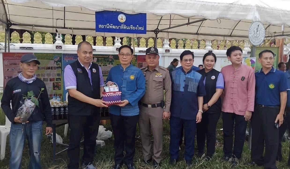 วันอังคารที่ 2 กันยายน 2568 นายจอมพล กฤษณสุวรรณ นักวิชาการเกษตรชำนาญการ และนางสาวบุญญาภัสสร์ ศักดิ์ธนานนท์ นักวิชาการเกษตร พร้อมเจ้าหน้าที่สถานีพัฒนาที่ดินเชียงใหม่ ร่วมจัดนิทรรศการงานวันเกษตรตำบลแม่แฝกใหม่ ประจำปี 2568 เพื่อดำเนินกิจกรรมและส่งผลการพัฒนาด้านการเกษตร เกิดการแลกเปลี่ยนเรียนรู้ประสบการณ์ระหว่างเกษตรกรในพื้นที่ และส่งเสริมสนับสนุนการท่องเที่ยวเชิงเกษตรในพื้นที่ชุมชุน ในการนี้ สถานีพัฒนาที่ดินเชียงใหม่ ได้ให้การสนับสนุนปัจจัยการผลิต ผลิตภัณฑ์เทคโนโลยีชีวภาพของกรมพัฒนาที่ดิน (สารเร่งซุปเปอร์ พด.1 ,พด.2 ,พด.3 ,พด.6 ,พด.7 และน้ำหมักชีวภาพ)โดยมี นายกิติพัฒน์ กะวัง นายอำเภอสันทราย กล่าวเปิดงาน ณ สนามหน้าวัดเจดีย์แม่ครัว ตำบลแม่แฝกใหม่ อำเภอสันทราย จังหวัดเชียงใหม่
