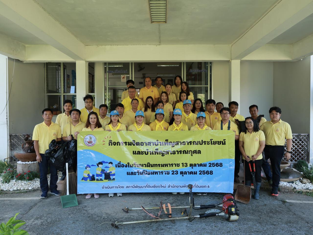 วันจันทร์ที่ 20 ตุลาคม 2568 นายนิลภัทร คงพ่วง ผู้อำนวยการสถานีพัฒนาที่ดินเชียงใหม่ มอบหมายให้เจ้าหน้าที่ในสังกัด ร่วมดำเนินกิจกรรมจิตอาสาบำเพ็ญสาธารณประโยชน์และบำเพ็ญสาธารณกุศล เนื่องในวันนวมินทรมหาราช 13 ตุลาคม 2568 และวันปิยมหาราช 23 ตุลาคม 2568 โดยร่วมกันทำความสะอาดและปรับปรุงภูมิทัศน์โดยรอบบริเวณอาคารที่ทำการ สถานีพัฒนาที่ดินเชียงใหม่