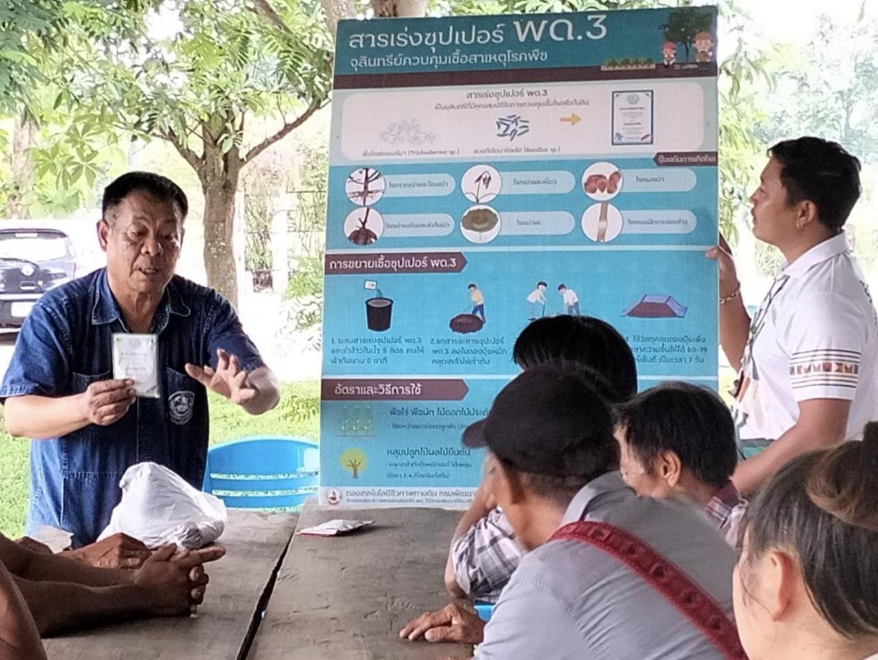 นายณรงค์ ออนแสน นักวิชาการเกษตร เป็นวิทยากรถ่ายทอดองค์ความรู้การใช้ผลิตภัณฑ์เทคโนโลยีชีวภาพเพื่อการปรับปรุงบำรุงดิน ใหักับสำนักงานเกษตรอำเภอแม่อาย ในโครงการป้องกันและแก้ไขปัญหาไฟป่า หมอกควัน และฝุ่นละอองขนาดเล็ก (PM 2.5) อย่างมีส่วนร่วม ภายใต้บริบทของพื้นที่ พร้อมกับสนับสนุนผลิตภัณฑ์เทคโนโลยีชีวภาพของกรมพัฒนาที่ดิน ณ ห้องประชุมองค์บริหารส่วนตำบลแม่นาวาง อำเภอแม่อาย จังหวัดเชียงใหม่ ในวันพฤหัสบดีที่ 16 พฤษภาคม 2567