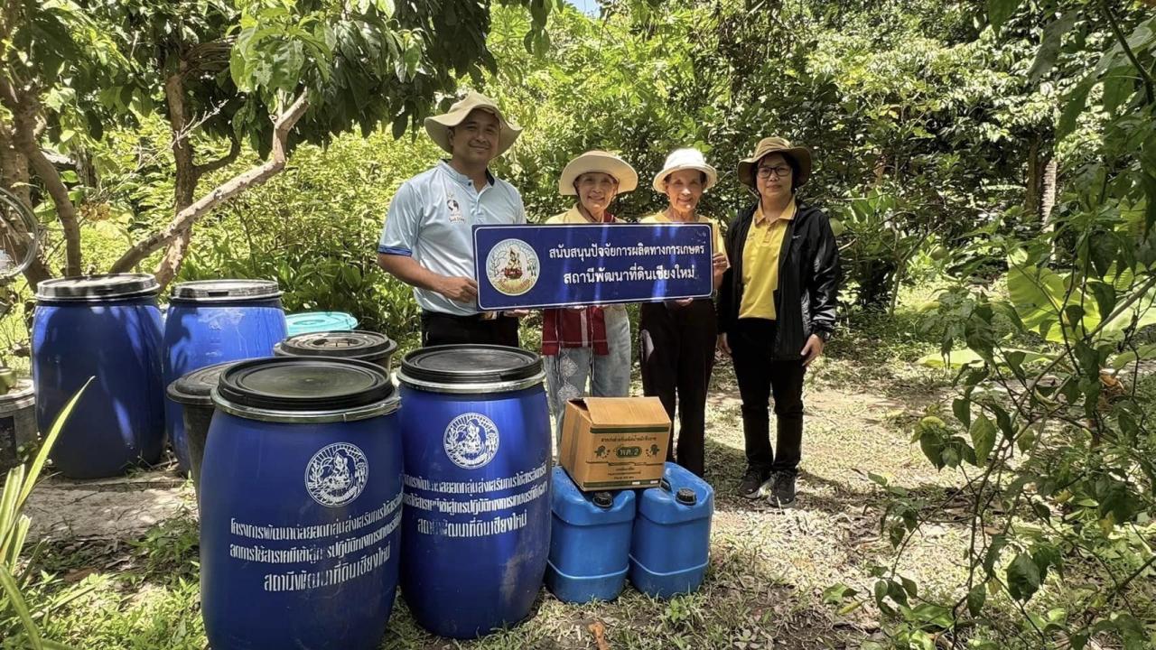 วันอังคารที่ 9 กรกฎาคม 2567 นายนิลภัทร คงพ่วง ผู้อำนวยการสถานีพัฒนาที่ดินเชียงใหม่ และนางสาวกัญญาภัทร พอสม นักวิชาการเกษตรชำนาญการพิเศษ ลงพื้นที่ตรวจเยี่ยมจุดเรียนรู้ด้านการพัฒนาที่ดิน ณ ศูนย์การเรียนรู้ โคก หนอง นา สวนกระจ่าง ของนางสาวพวงทอง กระจ่าง หมอดินอาสาประจำหมู่บ้าน หมู่ที่ 4 ตำบลแม่สา อำเภอแม่ริม จังหวัดเชียงใหม่ ซึ่งเป็นแหล่งการเรียนรู้แนวปรัชญาเศรษฐกิจพอเพียงตามแนวพระราชดำริ ส่งเสริมการใช้ประโยชน์จากทรัพยากรดินและภูมิปัญญาท้องถิ่น ประกอบด้วยแปลงสาธิตเกษตรทฤษฎีใหม่ แปลงปลูกพืชผสมผสาน โดยมีกิจกรรมผลิตปุ๋ยหมักจากสารเร่งซุเปอร์ พด.1 การผลิตน้ำหมักชีวภาพด้วยสารเร่งซุปเปอร์ พด. 2 พด.6 และ พด.7 เพื่อใช้ในการปรับปรุงบำรุงดิน เพิ่มธาตุอาหารและฮอร์โมนพืช กิจกรรมการใช้ประโยชน์จากหญ้าแฝก และมอบปัจจัยการผลิตทางการเกษตร ได้แก่ ถังพลาสติก กากน้ำตาล และผลิตภัณฑ์ สารเร่ง พด.ต่างๆ ให้แก่ หมอดินอาสา เพื่อใช้ในกิจกรรมของศูนย์เรียนรู้ฯ สำหรับเป็นแหล่งเรียนรู้ของผู้ที่สนใจต่อไป