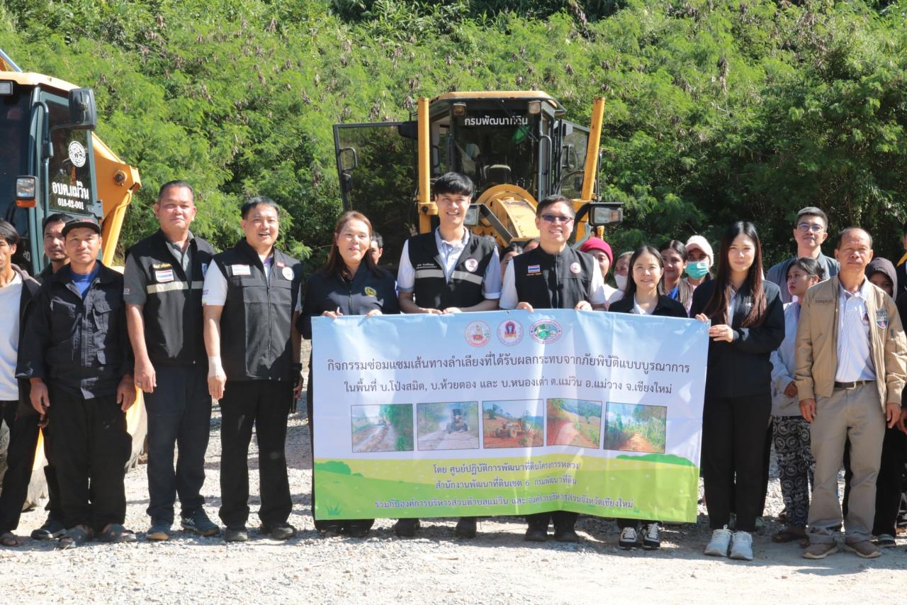 นายอรรถพันธ์ ศรีศุภโอฬาร ผู้อำนวยศูนย์ปฏิบัติการพัฒนาที่ดินโครงการหลวง นำข้าราชการและเจ้าหน้าที่ พร้อมเครื่องจักรกลของหน่วยงาน เข้าดำเนินงานกิจกรรม Kick off งานซ่อมแซมเส้นทางลำเลียงในพื้นที่ประสบภัยพิบัติในพื้นที่ตำบลแม่วิน อำเภอแม่วาง จังหวัดเชียงใหม่ ซึ่งได้รับการสนับสนุนงบประมาณเพิ่มเติมจากกรมพัฒนาที่ดิน เพื่อช่วยเหลือเกษตรกรผู้ประสบปัญหาการขนส่งและลำเลียงผลผลิตในพื้นที่บ้านโป่งสมิต บ้านห้วยตอง และบ้านหนองเต่า ตำบลแม่วิน อำเภอแม่วาง จังหวัดเชียงใหม่ ตามข้อสั่งการของรัฐมนตรีช่วยว่าการกระทรวงเกษตรและสหกรณ์ (นายนเรศ ธำรงค์ทิพยคุณ) โดยมีนายภูชเรศ ธำรงค์ทิพยคุณ สมาชิกสภาองค์การบริหารส่วนจังหวัดเชียงใหม่ และนายกองค์การบริหารส่วนตำบลแม่วิน เข้าร่วมเปิดกิจกรรมและพบปะเกษตรกรและชาวบ้าน เพื่อชี้แจงการดำเนินงานและรับฟังปัญหาในพื้นที่ เพื่อบรรเทาความเดือดร้อนของเกษตรกร และพี่น้องประชาชน พร้อมมอบหมายให้ศูนย์ปฏิบัติการพัฒนาที่ดินโครงการหลวง ช่วยสนับสนุนดูแลสนับสนุนระบบน้ำ (บ่อพักน้ำและระบบกระจายน้ำ) และงานพัฒนาที่ดินในพื้นที่ เมื่อวันอังคารที่ 25 พฤศจิกายน 2568 เวลา 10.00 น. ณ ลานกิจกรรม องค์การบริหารส่วนตำบลแม่วิน อำเภอแม่วาง จังหวัดเชียงใหม่