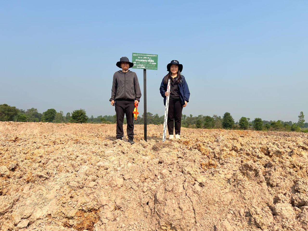 โดยดำเนินการตรวจวัดขนาดสระและปริมาณงานให้เป็นไปตามรูปแบบมาตรฐานของกรมพัฒนาที่ดิน