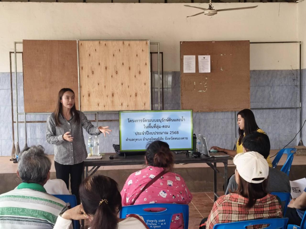 วันที่ 17 มีนาคม 2568 หน่วยพัฒนาที่ดินที่ 3 สถานีพัฒนาที่ดินหนองคาย ดำเนินการประชุมเกษตรกรที่สนใจเข้าร่วมโครงการฯ เพื่อชี้แจงแนวทางปฏิบัติงานและรายละเอียดแบบก่อสร้างงานจัดระบบอนุรักษ์ดินและน้ำในพื้นที่ลุ่ม-ดอน ประจำปีงบประมาณ 2568 ณ บ้านโนนท หมู่ที่ 4 ตำบลกุดบง อำเภอโพนพิสัย จังหวัดหนองคาย