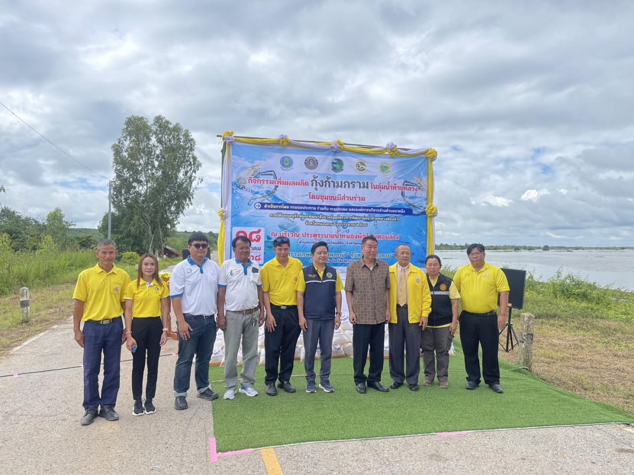 วันที่ 18 กรกฎาคม 2568 หน่วยพัฒนาที่ดินที่3 สถานีพัฒนาที่ดินหนองคาย เข้าร่วมพิธีเปิดโครงการพัฒนาลุ่มน้ำห้วยหลวงตอนล่าง จังหวัดหนองคาย โดยมี นายถาวร สังขะมาน นายอำเภอโพนพิสัย ให้เกียรติมาเป็นประธานในพิธีเปิด ด้วยองค์การบริหารส่วนตำบลนาหนัง ร่วมกับศูนย์วิจัยและพัฒนาประมงน้ำจืดจังหวัดขอนแก่น สำนักงานประมงจังหวัดหนองคาย ศูนย์วิจัยเพาะเลี้ยงสัตว์น้ำจืดหนองคาย และสำนักงานประมงอำเภอโพนพิสัย จัดกิจกรรมเพิ่มผลผลิตกุ้งก้ามกรามในแม่น้ำห้วยหลวงโดยชุมชนมีส่วนร่วม ตามแผนงานโครงการพัฒนาลุ่มน้ำห้วยหลวงตอนล่าง จังหวัดหนองคาย ปีงบประมาณ 2568 เพื่อสร้างความมั่นคงทางด้านอาหารและสร้างรายได้จากการเพิ่มผลผลิตกุ้งก้ามกรามให้กับชาวประมง ตลอดจนเสริมสร้างการมีส่วนร่วมในการบริหารจัดการทรัพยากรประมงระหว่างชุมชน ณ บริเวณประตูระบายน้ำหนองผักไหมตอนล่าง บ้านดงสระพัง ตำบลนาหนัง อำเภอโพนพิสัย จังหวัดหนองคาย