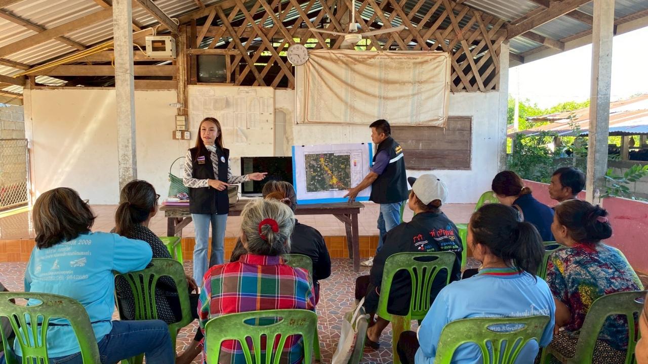 ร่วมกับกำนัน ผู้ใหญ่บ้าน ผู้ช่วยผู้ใหญ่บ้าน และเกษตรกรในพื้นที่