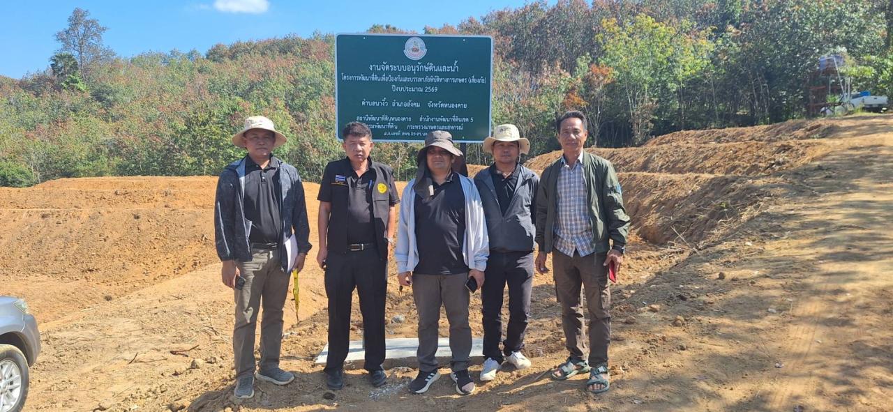 วันที่ 8 มกราคม 2569 นายวิชัย ทองขาว ผู้อำนวยการสถานีพัฒนาที่ดินหนองคาย ประธานคณะกรรมการตรวจรับพัสดุ พร้อมด้วยคณะกรรมฯ ดำเนินการตรวจรับงาน ในโครงการจัดระบบอนุรักษ์ดินและน้ำในพื้นที่เสี่ยงภัยพิบัติทางการเกษตร กิจกรรมจัดทำระบบอนุรักษ์ดินและน้ำ ได้แก่ ขั้นบันไดดินแบบไม่ต่อเนื่อง ทางลำเลียงในไร่นา และท่อลอดทางลำเลียง