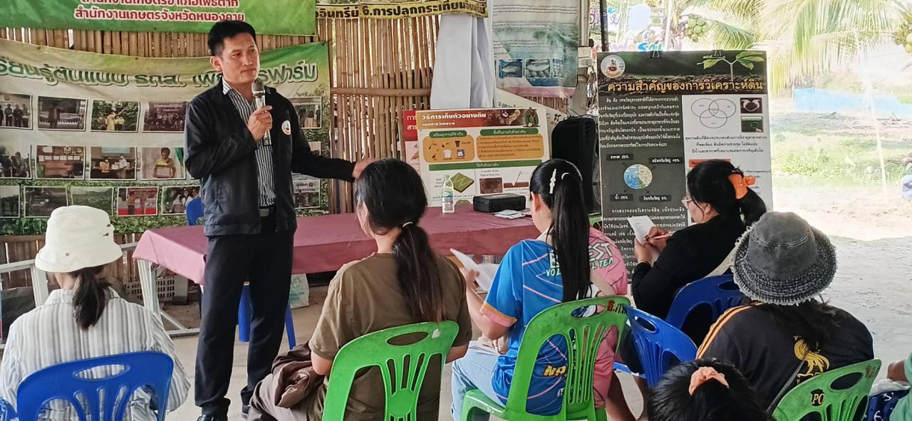 วันที่ 19 มีนาคม 2569 สถานีพัฒนาที่ดินหนองคาย ถ่ายทอดความรู้ให้กับเกษตรกรผู้เข้าร่วมโครงการระบบส่งเสริมการเกษตรแบบแปลงใหญ่เพื่อปรับเพิ่มผลิตภาพการผลิต ประจำปีงบประมาณ 2569 ณ. กลุ่มแปลงใหญ่พืชผักปลอดภัยบ้านไร่ ดอนไผ่ ตำบลโพนทอง อำเภอโพธิ์ตาก จังหวัดหนองคาย โดยถ่ายทอดความรู้ด้านการเก็บตัวอย่างดินการอ่านผลวิเคราะห์ดินการผลิตปุ๋ยหมักน้ำหมักชีวภาพจากสารเร่ง พด.และการผสมปุ๋ยให้เหมาะสมกับแปลง