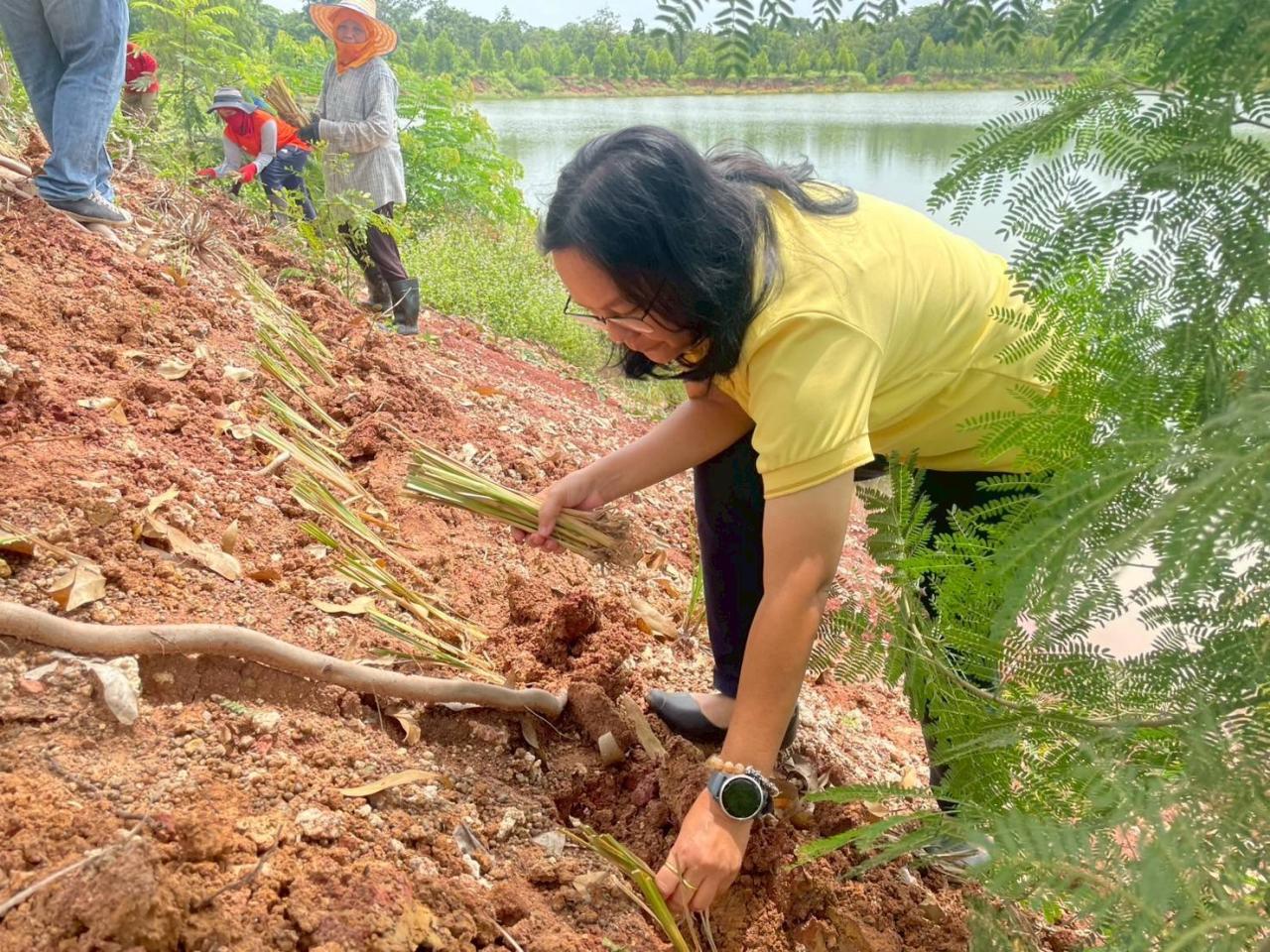 เวลา 09.00 น. นางสาวทัณฑิกา มุงคุณคำชาว นักวิชาการเกษตรชำนาญการพิเศษ พร้อมเจ้าหน้าที่สถานีพัฒนาที่ดินอุดรธานี ร่วมปลูกหญ้าแฝก ณ หนองน้ำเกลี้ยง บ้านกั้ง หมู่ทึ่ 1 ตำบลดอนหายโศก อำเภอหนองหาน จังหวัดอุดรธานี จำนวน 100,000 กล้า โดยมีวัตถุประสงค์ เพื่อป้องกันการชะล้างพังทลายของดิน รักษาความชุ่มชื้นในดินและเก็บกักตะกอนดินและสารพิษต่าง ๆ ไม่ให้ไหลลงในน้ำได้