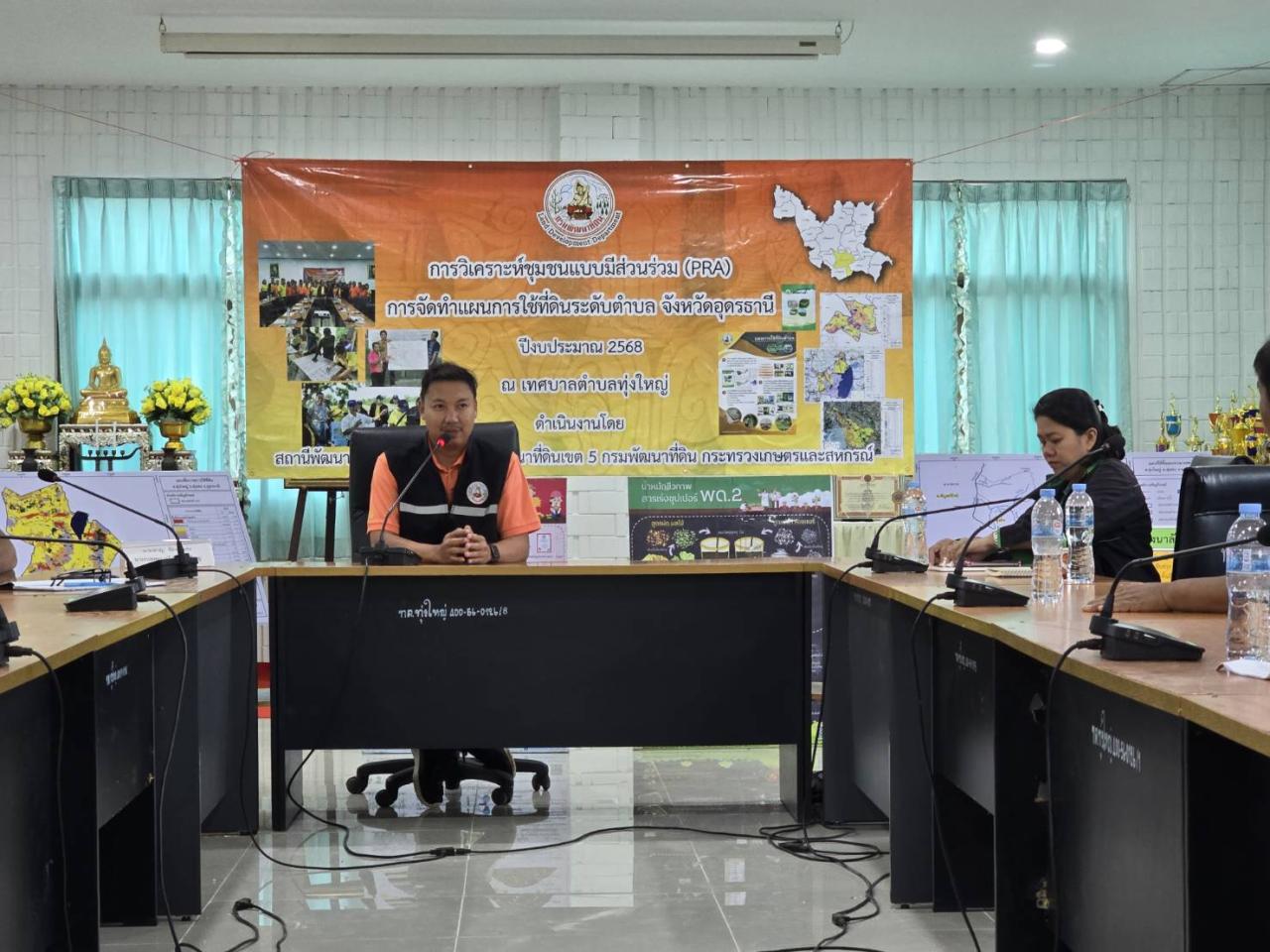 เวลา ๐๘.๓๐ น. สถานีพัฒนาที่ดินอุดรธานี นำโดยนางสาวทัณฑิกา มุงคุณคำซาว นักวิชาการเกษตรชำนาญการพิเศษ นายเศรษฐพร เพชรนาวา นักวิชาการเกษตรปฏิบัติการ และเจ้าหน้าที่สถานีพัฒนาที่ดินอุดรธานี ได้ดำเนินการจัดกิจกรรมการวิเคราะห์ชุมชนแบบมีส่วนร่วม (PRA – Participatory Rural Appraisa ) ปีงบประมาณ ๒๕๖๘ เพื่อเป็นการใช้ที่ดินให้เกิดประโยชน์สูงสุดและเป็นไปอย่างยั่งยืน การรับฟังความคิดเห็น ข้อเสนอแนะ ปัญหา และความต้องการของชุมชน เพื่อรวบรวมประเด็นข้อมูลต่างๆ นำมาจัดทำแผนการใช้ที่ดินระดับตำบล ณ ห้องประชุมเทศบาลตำบลทุ่งใหญ่ ตำบลทุ่งใหญ่ อำเภอทุ่งฝน จังหวัดอุดรธานี