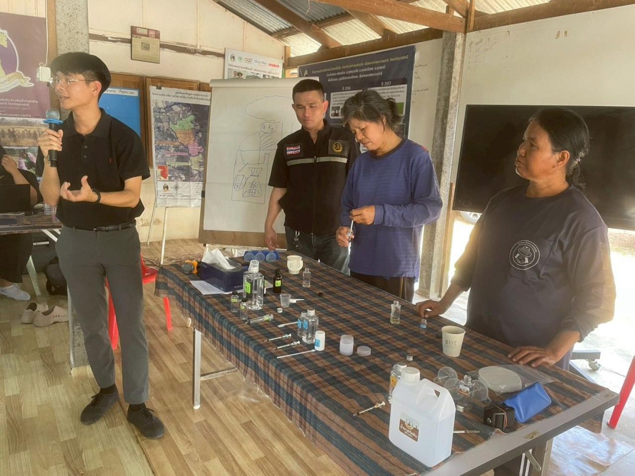ทั้งนี้ ได้บรรยายให้ความรู้ด้านเก็บตัวอย่างดินเพื่อส่งตรวจวิเคราะห์ รวมถึงการปรับปรุงดินตามหลักวิชาการที่ถูกต้อง ให้แก่ กลุ่มเป้าหมายจำนวน 30 ราย เพื่อเสริมทักษะความรู้ให้เป็นไปตามวัตถุประสงค์ของโครงการ และสามารถนําไปประยุกต์ใช้ในการทําการเกษตรของสมาชิกกลุ่ม ต่อไป