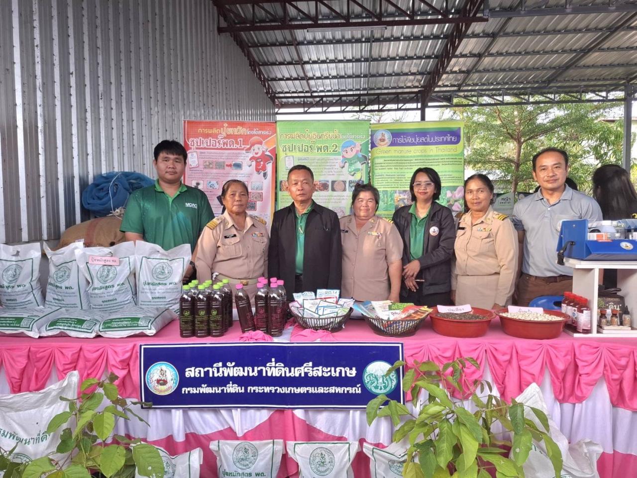นายสาคร เหมือนตา ผู้อำนวยการสถานีพัฒนาที่ดินศรีสะเกษ พร้อมด้วยเจ้าหน้าที่ฝ่ายวิชาการเพื่อการพัฒนาที่ดินที่ 4 ร่วมจัดนิทรรศการด้านการพัฒนาที่ดินในงานตรวจประเมินผลงานของกำนันตำบลโคกจาน ได้แก่ การปรับปรุงบำรุงดินด้วยเมล็ดพันธุ์พืชปุ๋ยสด ผลิตภัณฑ์เทคโนโลยีชีวภาพของกรมพัฒนาที่ดิน การตรวจวิเคราะห์ดินโดยใช้ชุดตรวจสอบดินภาคสนาม พร้อมทั้งสนับสนุนปุ๋ยหมักสูตร พด.1 และน้ำหมักชีวภาพ พด.2