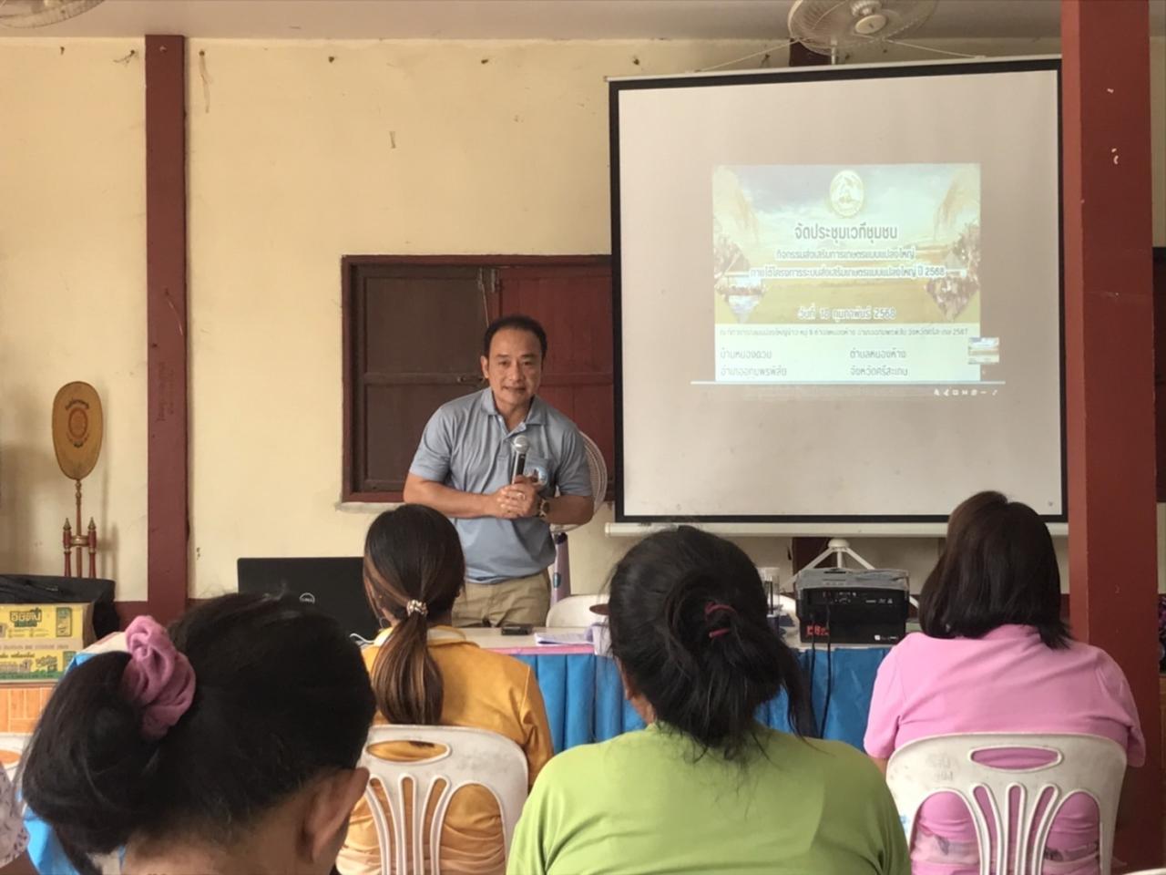 ✅นายสาคร เหมือนตา ผู้อำนวยการสถานีพัฒนาที่ดินศรีสะเกษ มอบหมายให้ เจ้าหน้าที่ฝ่ายวิชาการเพื่อการพัฒนาที่ดินที่ 4 เข้าร่วมประชุมเวทีชุมชน ภายใต้โครงการระบบส่งเสริมเกษตรแบบแปลงใหญ่ ปี 2568 และถ่ายทอดองค์ความรู้ ให้คำแนะนำด้านการพัฒนาที่ดิน เพื่อเพิ่มประสิทธิภาพการผลิตข้าว และคุณภาพผลผลิตข้าว ในกลุ่มนาแปลงใหญ่ข้าว ดังนี้