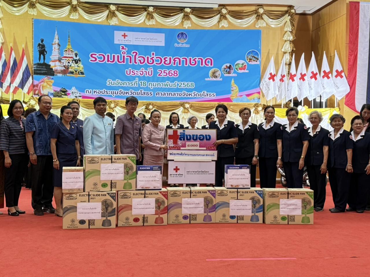 วันอังคารที่ 18 กุมภาพันธ์ 2568 นางสาวสุวรรณภา บุญจงรักษ์ ผู้อำนวยการสถานีพัฒนาที่ดินยโสธร ร่วมงาน “วันรวมน้ำใจช่วยกาชาด ประจำปี 2568” สนับสนุนมอบสิ่งของ เพื่อจัดกิจกรรมหารายได้ของเหล่ากาชาดจังหวัดยโสธร เนื่องในวันสถาปนาจังหวัดยโสธร และงานกาชาด ประจำปี 2568 ณ บริเวณหอประชุมจังหวัดยโสธร ศาลากลางจังหวัดยโสธร