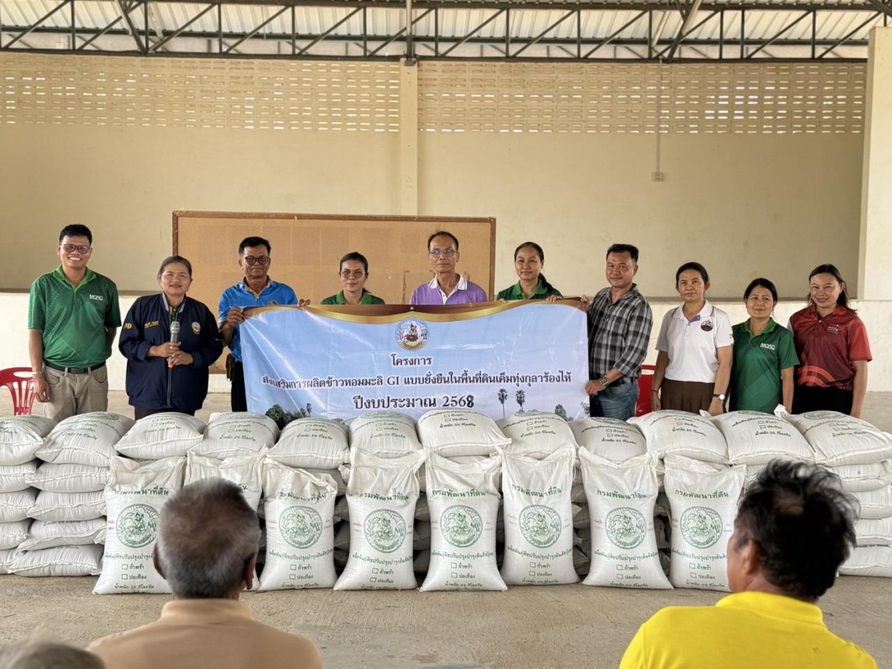 นางสาวสุวรรณภา บุญจงรักษ์ ผู้อำนวยการสถานีพัฒนาที่ดินยโสธร และเจ้าหน้าที่สถานีพัฒนาที่ดินยโสธร ร่วมกับ นายยุทธสงค์ นามสาย ผู้เชี่ยวชาญด้านวางระบบการพัฒนาที่ดิน พร้อมด้วยนางสาวกัญญาพร สังข์แก้ว ผู้อำนวยการกลุ่มวิชาการเพื่อการพัฒนาที่ดิน นางอุมรา กล้าหาญ ผู้อำนวยการกลุ่มวิเคราะห์ดิน และเจ้าหน้าที่ สำนักงานพัฒนาที่ดินเขต 4 ลงพื้นที่ส่งเสริมการผลิตข้าวหอมมะลิ GI แบบยั่งยืน ในพื้นที่ดินเค็มทุ่งกุลาร้องไห้ เพื่อวิเคราะห์และประเมินสถานการณ์กลุ่มเกษตรกรที่เข้าร่วม “โครงการส่งเสริมการผลิตข้าวหอมมะลิ GI แบบยั่งยืนในพื้นที่ดินเค็มทุ่งกุลาร้องไห้ ปีงบประมาณ 2568” โดยมีเกษตรกรเข้าร่วมโครงการจำนวน 68 ราย