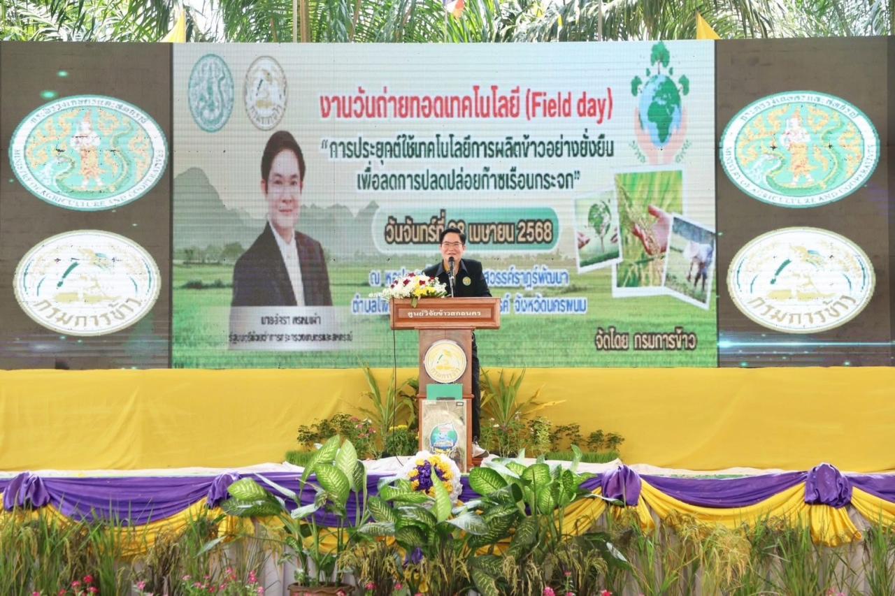 นางสาวสุวรรณภา บุญจงรักษ์ ผู้อำนวยการสถานีพัฒนาที่ดินยโสธร ร่วมต้อนรับ นายอัครา พรหมเผ่า รัฐมนตรีช่วยว่าการกระทรวงเกษตรและสหกรณ์ และ ดร.ทวีศักดิ์ ธนเดโชพล อธิบดีกรมพัฒนาที่ดินในพิธีเปิดงานถ่ายทอดเทคโนโลยี (Field Day) "การประยุกต์ใช้เทคโนโลยีการผลิตข้าวอย่างยั่งยืน เพื่อลดการปลดปล่อยก๊าซเรือนกระจก" พร้อมด้วยนายสุทธิดล วงษ์จันฬา ผู้อำนวยการสำนักงานพัฒนาที่ดินเขต 4 พร้อมด้วยผู้อำนวยการสถานีพัฒนาที่ดินและผู้อำนวยการกลุ่ม