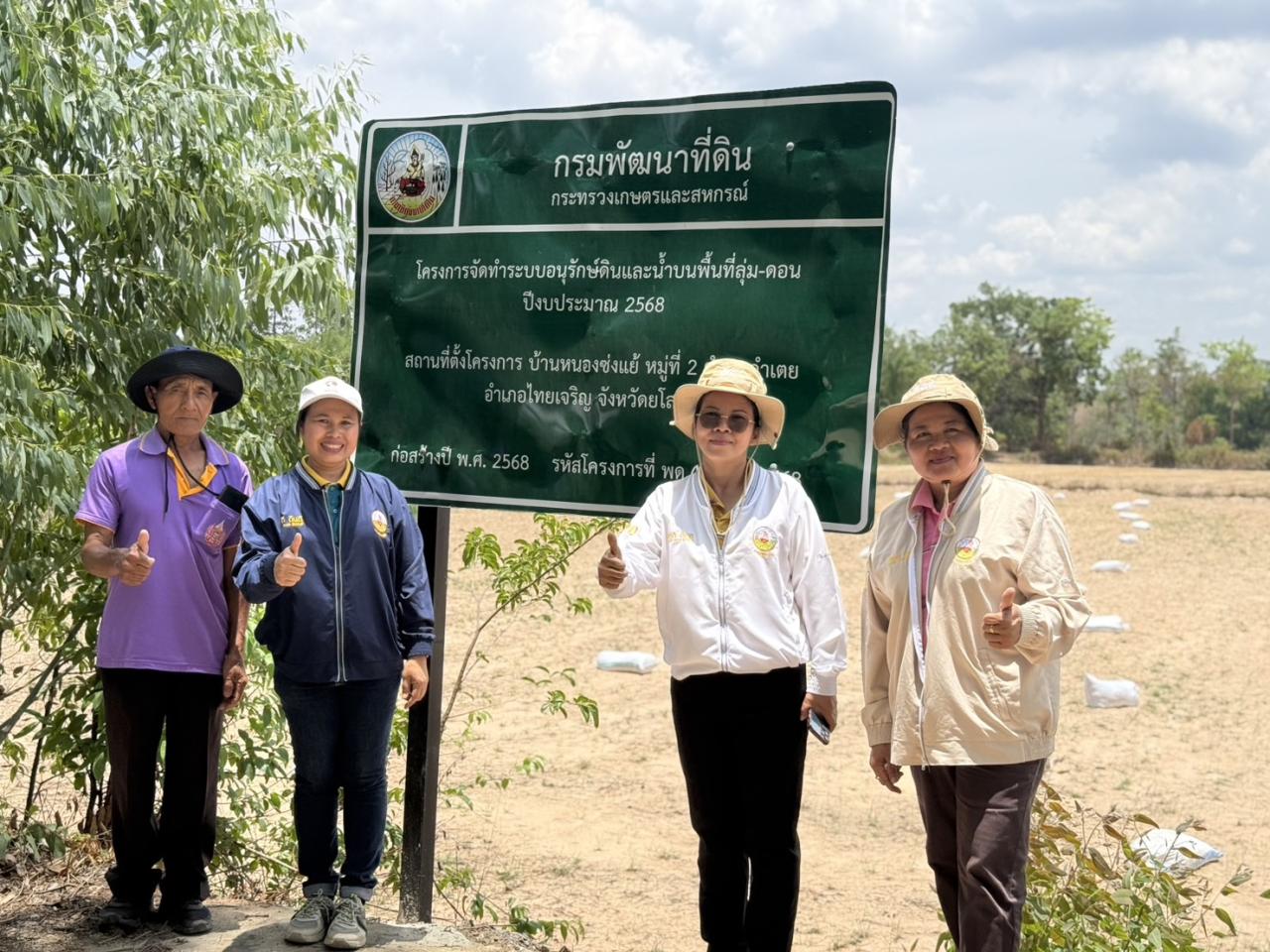 นางสาวสุวรรณภา บุญจงรักษ์ ผู้อำนวยการสถานีพัฒนาที่ดินยโสธร พร้อมด้วยเจ้าหน้าที่ ลงพื้นติดตามงานโครงการจัดทำระบบอนุรักษ์ดินและน้ำบนพื้นที่ลุ่ม-ดอน ปีงบประมาณ 2568