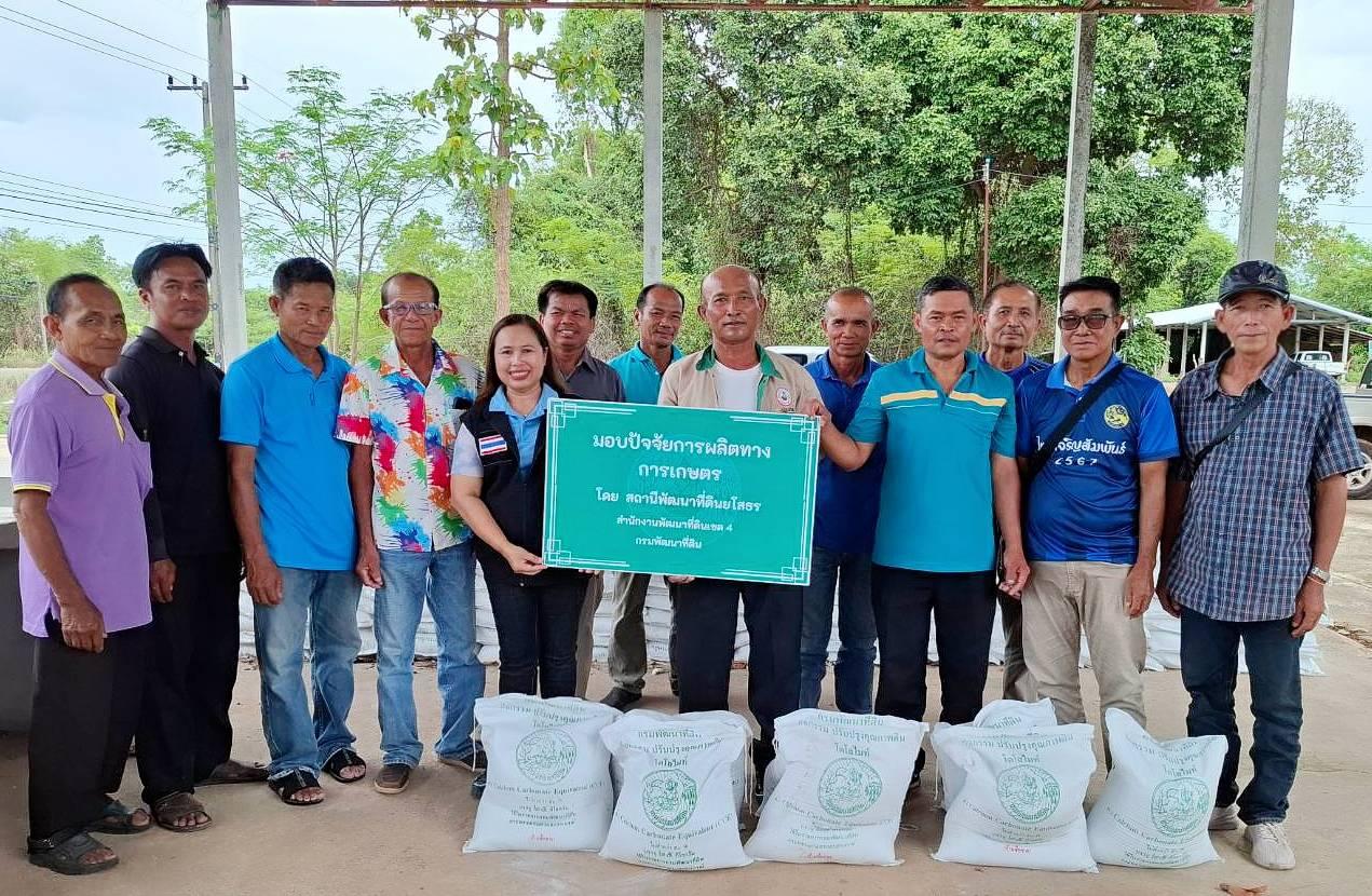 นางสาวสุวรรณภา บุญจงรักษ์ ผู้อำนวยการสถานีพัฒนาที่ดินยโสธร มอบหมาย นางจุฑาทิพย์ สีดาพาลี เจ้าพนักงานการเกษตรปฏิบัติงาน พร้อมเจ้าหน้าที่ ดำเนินการมอบปัจจัยการผลิตปรับปรุงคุณภาพดินปูนโดโลไมท์ ให้แก่เกษตรกร เพื่อให้เกษตรกรนำปูนโดโลไมท์ไปใช้ปรับสภาพดิน แก้ปัญหาดินกรด ดินเสื่อมโทรม ให้กลับมามีความอุดมสมบูรณ์เหมาะแก่การเจริญเติบโตของพืชนำไปสู่ผลผลิตที่ดีมีคุณภาพ