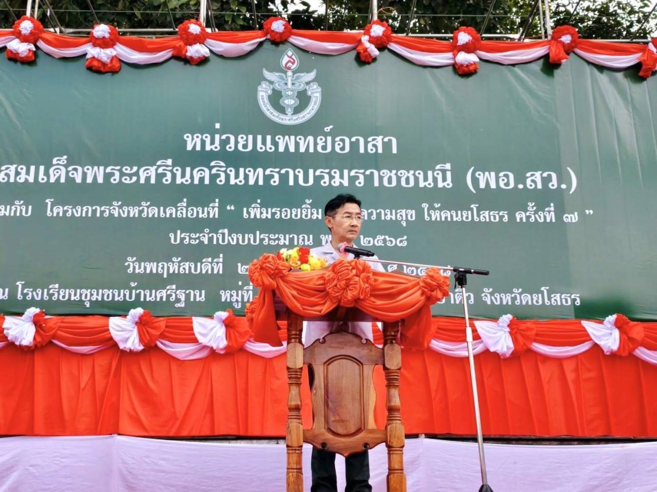 นางสาวสุวรรณภา บุญจงรักษ์ ผู้อำนวยการสถานีพัฒนาที่ดินยโสธร มอบหมายอบหมายนางจุฑาทิพย์ สีดาพาลี เจ้าพนักงานการเกษตรปฏิบัติงาน พร้อมเจ้าหน้าที่ ร่วมกิจกรรมการออกหน่วยแพทย์ พอ.สว. ร่วมกับโครงการจังหวัดเคลื่อนที่ฯ จังหวัดยโสธร ครั้งที่ 7 ประจำปีงบประมาณ พ.ศ. 2568