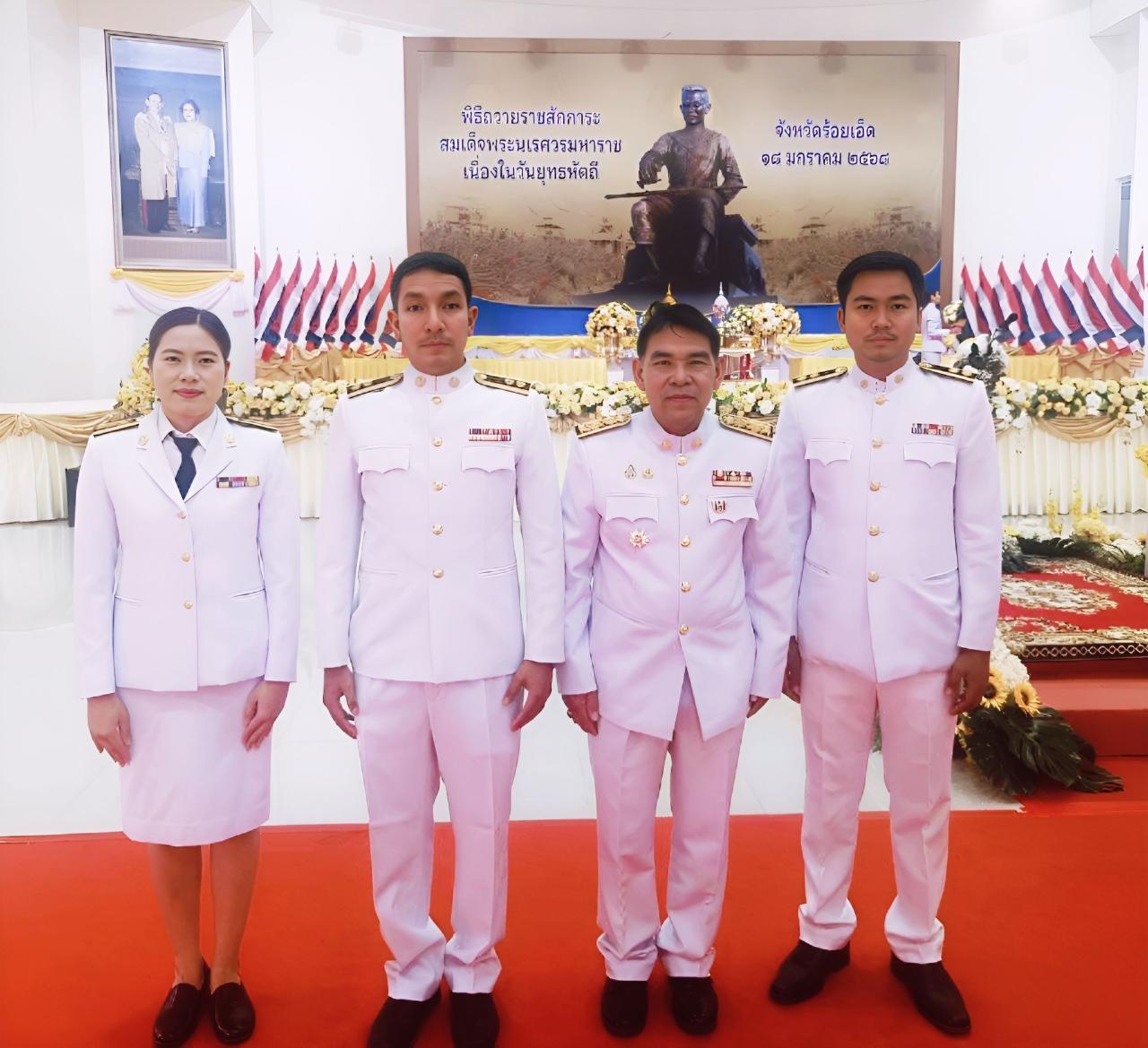 พร้อมกล่าวคำถวายราชสดุดีเพื่อเป็นการน้อมรำลึกถึงพระเกียรติคุณแด่องค์สมเด็จพระนเรศวรมหาราช ณ หอประชุมจังหวัดร้อยเอ็ด อำเภอเมือง จังหวัดร้อยเอ็ด โดยมีนายชัชวาลย์ เบญจสิริวงศ์ ผู้ว่าราชการจังหวัดร้อยเอ็ด เป็นประธานในพิธี