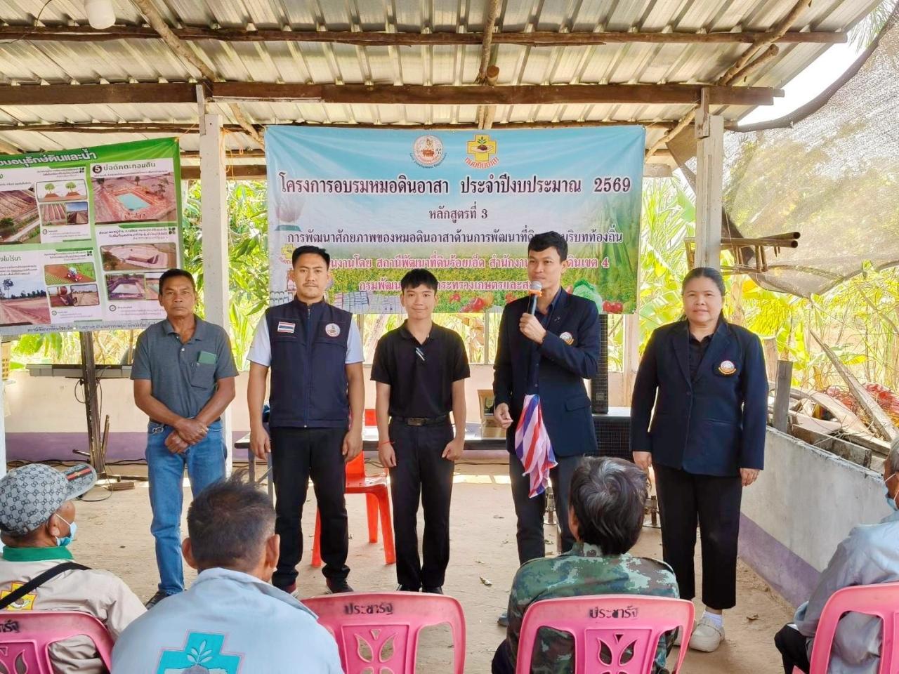สถานีพัฒนาที่ดินร้อยเอ็ด โดยนางสาวสิญารัตน์ ณรงค์ภักดีรัตน์ ผู้อำนวยการสถานีพัฒนาที่ดินร้อยเอ็ด มอบหมายนายไวกูณฐ์ คำสำลี นักวิชาการเกษตรปฏิบัติการ พร้อมเจ้าหน้าที่ให้ฝ่ายวิชาการเพื่อการพัฒนาที่ดินที่ 2 ดำเนินการอบรมหมอดินอาสาภายใต้โครงการอบรมหมอดินอาสา หลักสูตรที่ 3 การพัฒนาศักยภาพของหมอดินอาสาด้านการพัฒนาที่ดินตามบริบทท้องถิ่น ปีงบประมาณ 2569 ณ ศูนย์เรียนรู้การเกษตรไร่นาสวนผสม (ศพก.เครือข่าย) บ้านสีเสียด หมู่ที่ 1 ตำบลศรีวิลัย อำเภอเสลภูมิ จังหวัดร้อยเอ็ด เพื่อถ่ายทอดองค์ความรู้ด้านการพัฒนาที่ดินและเป็นการพัฒนาศักยภาพของหมอดินอาสาให้มีความเหมาะสมกับสภาพพื้นที่ทางการเกษตรตามบริบทของท้องถิ่นอย่างยั่งยืน