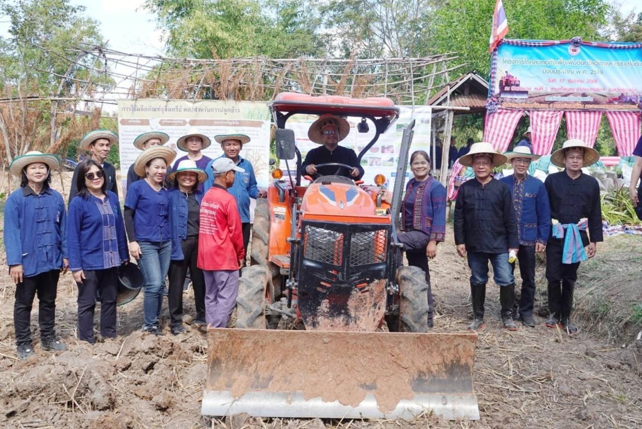 สถานีพัฒนาที่ดินร้อยเอ็ด นางสาวสิญารัตน์ ณรงค์ภักดีรัตน์ ผู้อำนวยการสถานีพัฒนาที่ดินร้อยเอ็ด พร้อมเจ้าหน้าที่ในสังกัด กิจกรรมโครงการไถกลบตอซัง เพื่อเพิ่มอินทรีย์ในวัตถุและแร่ธาตุในดิน ปีงบประมาณ 2569 พร้อมร่วมหว่านเมล็ดพันธุ์พืชปุ๋ยสด (ปอเทือง) บริเวณแปลงนาสาธิต เพื่อส่งเสริมให้เกษตรกร รับเปลี่ยนแนวความคิดของเกษตรกร จากที่มีการเผาตอซังหลังเก็บเกี่ยวข้าว หันมาเป็นการไถกลบตอซังข้าวแทน รวมกับการปลูกพืชตระกูลถั่ว เมื่อออกดอกแล้ว ไถกลบลงไปในดิน เพื่อเพิ่มอินทรียวัตถุและแร่ธาตุในดินที่เกษตรกรสามารถปฏิบัติได้อย่าง กว้างขวาง ไม่มีขั้นตอนยุ่งยาก นอกจากจะเป็นการเพิ่มความอุดมสมบูรณ์ เพิ่มปริมาณ ธาตุอาหารให้กับดินแล้ว ยังเป็นการใช้ดินและที่ดินเป็นไปอย่างคุ้มค่าและยั่งยืน โดยได้รับเกียรติจากนายชัชวาลย์ เบญจศิริวงค์ ผู้ว่าราชการจังหวัดร้อยเอ็ด เป็นประธานในพิธี หัวหน้าส่วนราชการ นายอำเภอ กำนัน ผู้ใหญ่บ้าน ประชาชนทั่วไป เข้าร่วมงาน ณ แปลงนาสามัคคี บ้านท่าม่วง หมู่ 3 ตำบลโพนสูง อำเภอปทุมรัตต์ จังหวัดร้อยเอ็ด