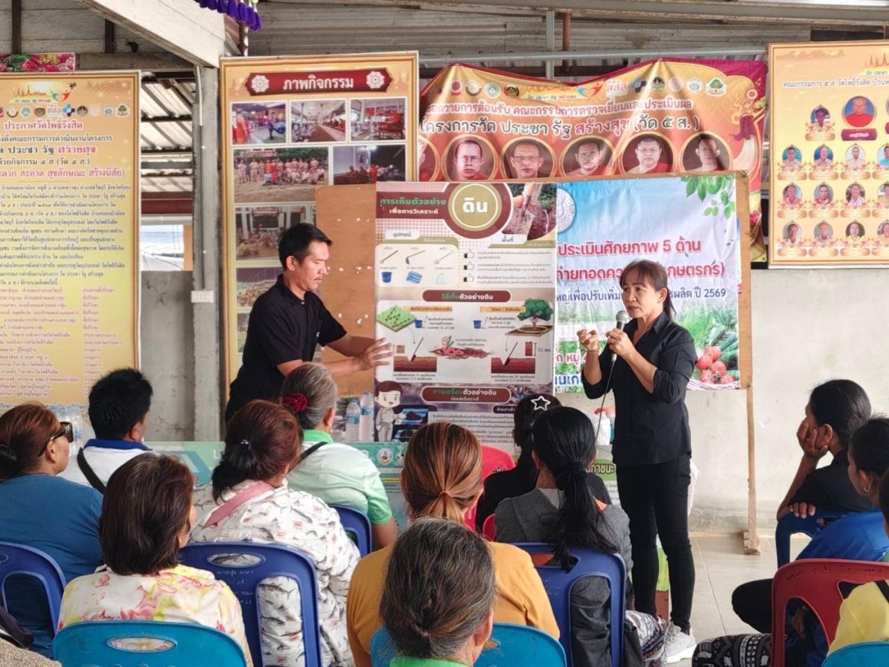 สถานีพัฒนาที่ดินร้อยเอ็ด โดยนางสาวสิญารัตน์ ณรงค์ภักดีรัตน์ ผู้อำนวยการสถานีพัฒนาที่ดินร้อยเอ็ด มอบหมายให้เจ้าหน้าที่ฝ่ายวิชาการเพื่อการพัฒนาที่ดินที่ 1 เป็นวิทยากรถ่ายทอดองค์ความรู้ให้กลุ่มเกษตรโครงการระบบส่งเสริมเกษตรแบบแปลงใหญ่เพื่อปรับเพิ่มผลิตภาพการผลิต ณ บ้านหนองบัวน้อย หมู่ที่ 4 ตำบลเขวาทุ่ง อำเภอธวัชบุรี จังหวัดร้อยเอ็ด ประจำปีงบประมาณ 2569 ในหัวข้อ “การปรับปรุงบำรุงดิน และการตรวจวิเคราะห์ดิน การใช้ผลิตภัณฑ์ของกรมพัฒนาที่ดินให้เหมาะสมกับสภาพพื้นที่ เพื่อลดต้นทุนและเพิ่มผลผลิต ซึ่งมีเกษตรกรเป้าหมาย จำนวน 30 ราย