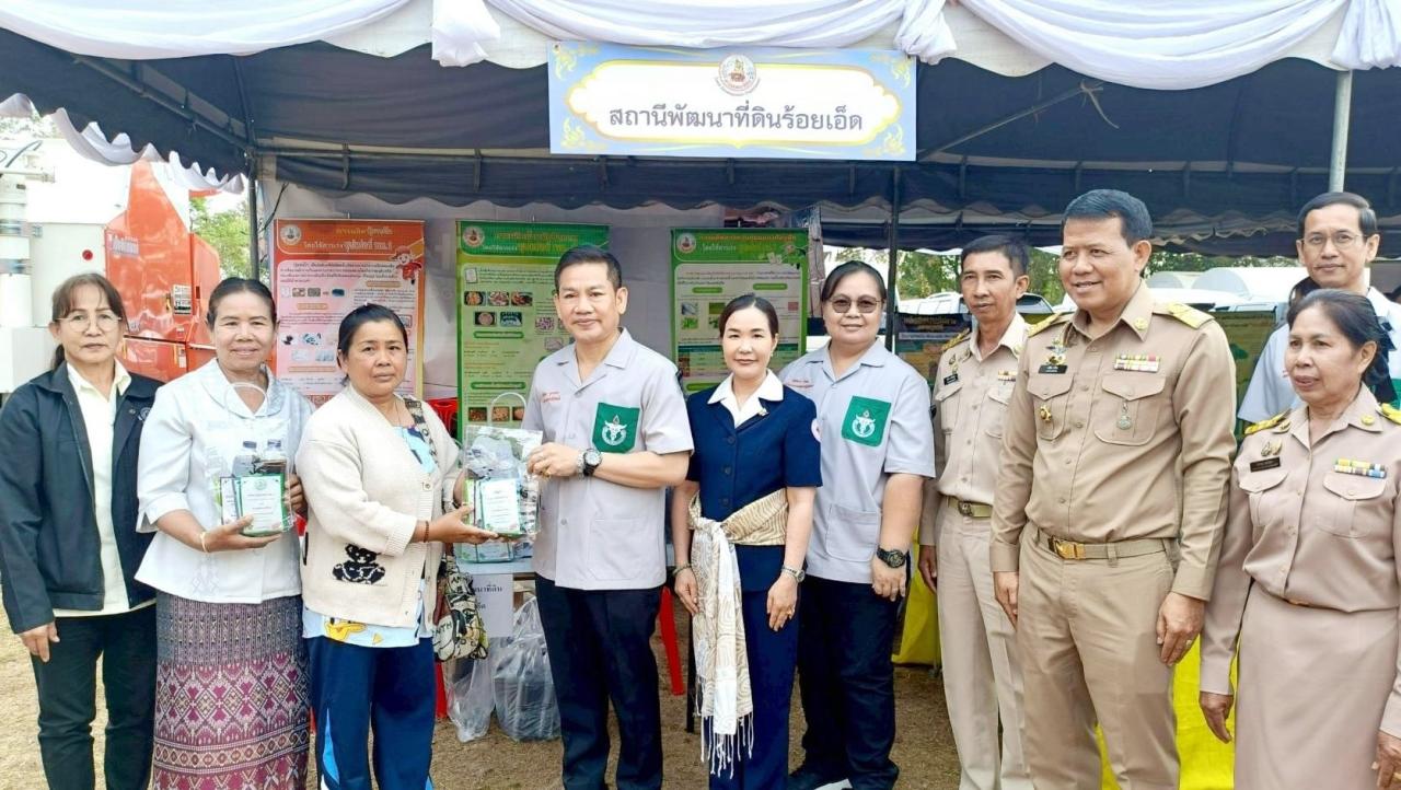 สถานีพัฒนาที่ดินร้อยเอ็ด โดย นางสาวสิญารัตน์ ณรงค์ภักดีรัตน์ ผู้อำนวยการสถานีพัฒนาที่ดินร้อยเอ็ด มอบหมายให้นางสาวสุพัตรา ปัจชะ นักวิชาการเกษตรปฏิบัติการพร้อมเจ้าหน้าที่ฝ่ายวิชาการเพื่อการพัฒนาที่ดินที่ 1 ร่วมออกหน่วยบริการ โครงการหน่วยแพทย์เคลื่อนที่ พอ.สว. จังหวัดร้อยเอ็ด ร่วมกับ โครงการจังหวัดร้อยเอ็ดเคลื่อนที่ บำบัดทุกข์ บำรุงสุข และสร้างรอยยิ้มให้ประชาชน ครั้งที่ 3 ประจำปีงบประมาณ 2569 โดยมีนายพิชัยยา ตุระซอง รองผู้ว่าราชการจังหวัดร้อยเอ็ด เป็นประธานในพิธี ซึ่งสถานีพัฒนาที่ดินร้อยเอ็ดได้ร่วมออกหน่วยบริการให้คำแนะนำการผลิตและการใช้ผลิตภัณฑ์เทคโนโลยีชีวภาพของกรมพัฒนาที่ดิน การปรับปรุงบำรุงดิน และแจกจ่ายผลิตภัณฑ์น้ำหมักชีวภาพจากสารเร่งซุปเปอร์ พด. 2 ให้แก่เกษตรกรและผู้เข้าร่วมงาน