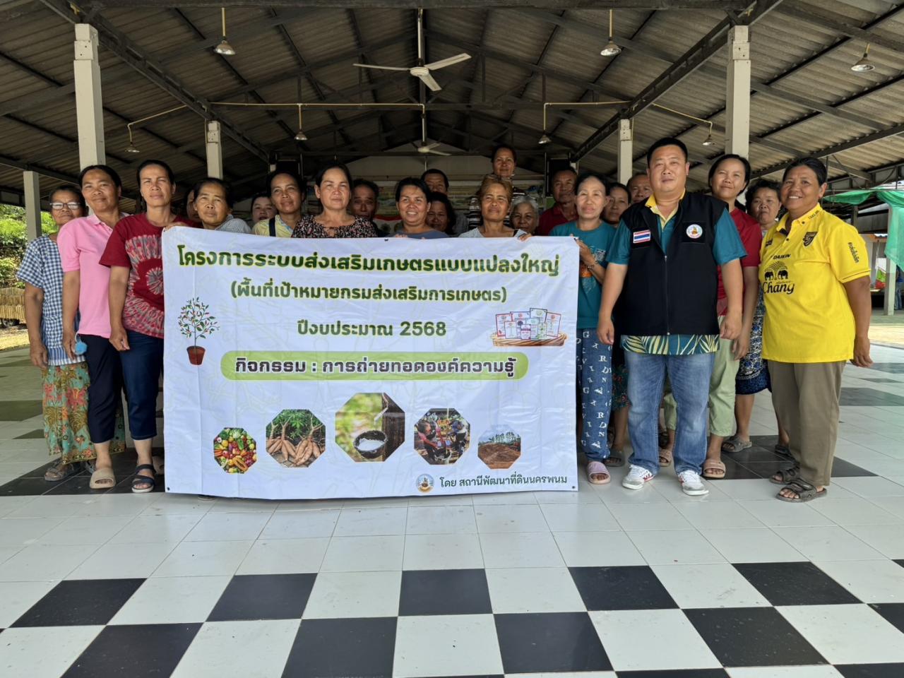 วันพุธที่ 9 เมษายน 2568 นายศราวุธ ศิริลักณ์ ผู้อำนวยการสถานีพัฒนาที่ดินนครพนม มอบหมายให้ นายสุรพงษ์ เบญมาตย์ เจ้าพนักงานการเกษตรปฏิบัติงาน และนายอรรนพ แสนเมือง นักวิชาการเกษตร ดำเนินกิจกรรมถ่ายทอดองค์ความรู้การพัฒนาที่ดิน ภายใต้โครงการระบบส่งเสริมการเกษตรแบบแปลงใหญ่ ปี 2568 (พื้นที่เป้าหมายกรมส่งเสริมการเกษตร) โดยอบรมถ่ายทอดองค์ความรู้เกี่ยวกับการจัดการดินและการใช้ผลิตภัณฑ์จุลินทรีย์ พด. ให้แก่กลุ่มเกษตรกรผู้ร่วมโครงการฯ เพื่อให้เกษตรกรมีความรู้ด้านงานพัฒนาที่ดิน และสามารถนำไปปรับใช้ในพื้นที่ของตนเองได้อย่างถูกต้อง และเหมาะสม ณ บ้านโพนก่อ หมู่ 6 ตำบลนาคำอำเภอศรีสงคราม จังหวัดนครพนม