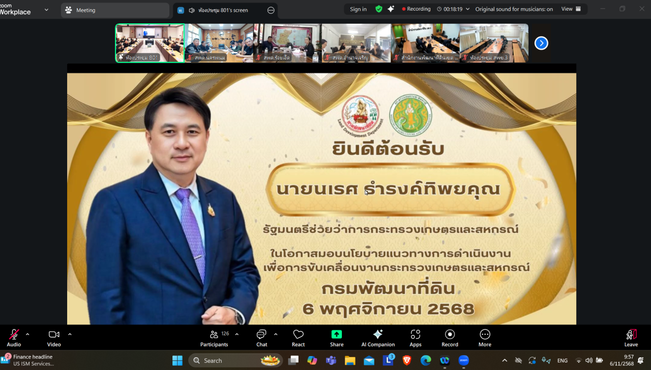 ณ ห้องประชุม 2801 ชั้น 8 กรมพัฒนาที่ดิน พร้อมทั้งเจ้าหน้าที่สถานีพัฒนาที่ดินนครพนม เข้าร่วมรับฟังการประชุมผ่านระบบอิเล็กทรอนิกส์ Zoom meeting ณ ห้องประชุมสถานีพัฒนาที่ดินนครพนม ตำบลหนองญาติ อำเภอเมืองนครพนม จังหวัดนครพนม
