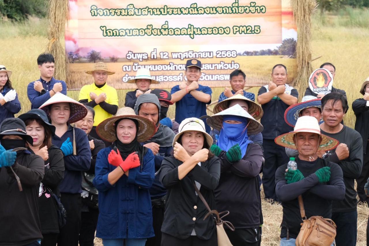 กิจกรรมสืบสานประเพณีลงแขกเกี่ยวข้าว ไถกลบตอชังเพื่อลดฝุ่นละออง P.M2.5